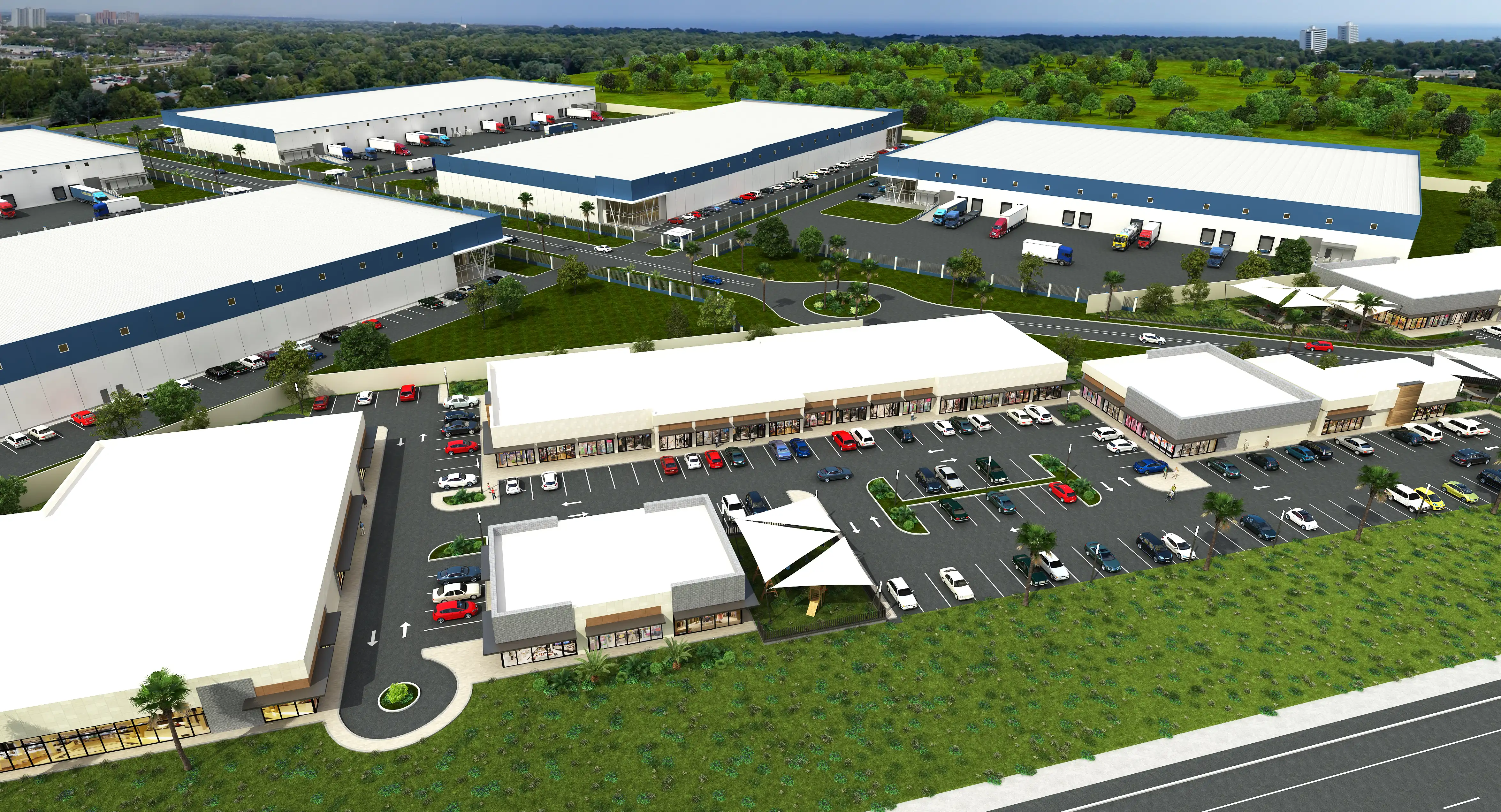 The Southern tract of Marina Industrial Park (Phase I) includes 100,000 square feet of commercial retail space as well as over 740,000 square feet of industrial space. The industrial space will accommodate five state-of-the-art multi-tenant industrial buildings, with four buildings each encompassing 150,000 square feet and one slightly smaller facility at 140,000 square feet.